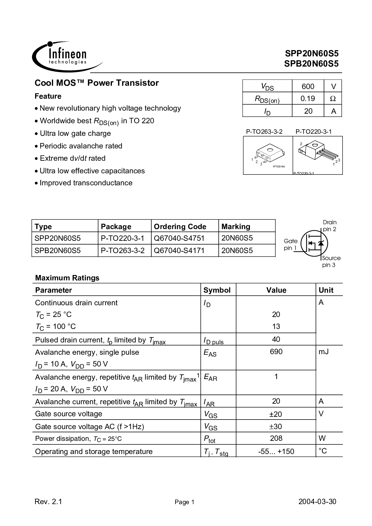 | spp20n60s5 最低价格2.00元 ,最高价格40.80元 ,平均价格 12.63元 |